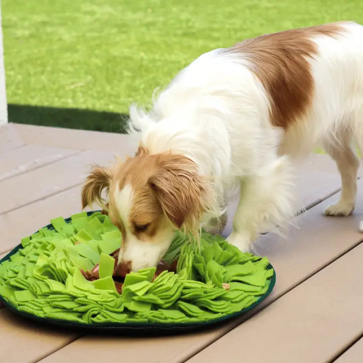 Show your pup how what it's like to eat in the wild with Injoya's "Avocado" snuffle feeding mat. This feeding mat activates foraging instincts by mimicking the hunt. Made of non-toxic and durable materials, stimulates your dog's senses, and makes meals fun.