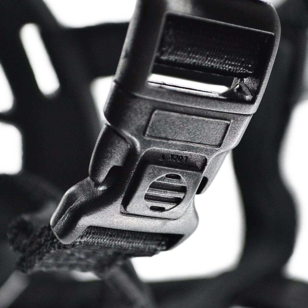 - Safety strapping with two additional points of secure attachment so that the muzzle will stay in place