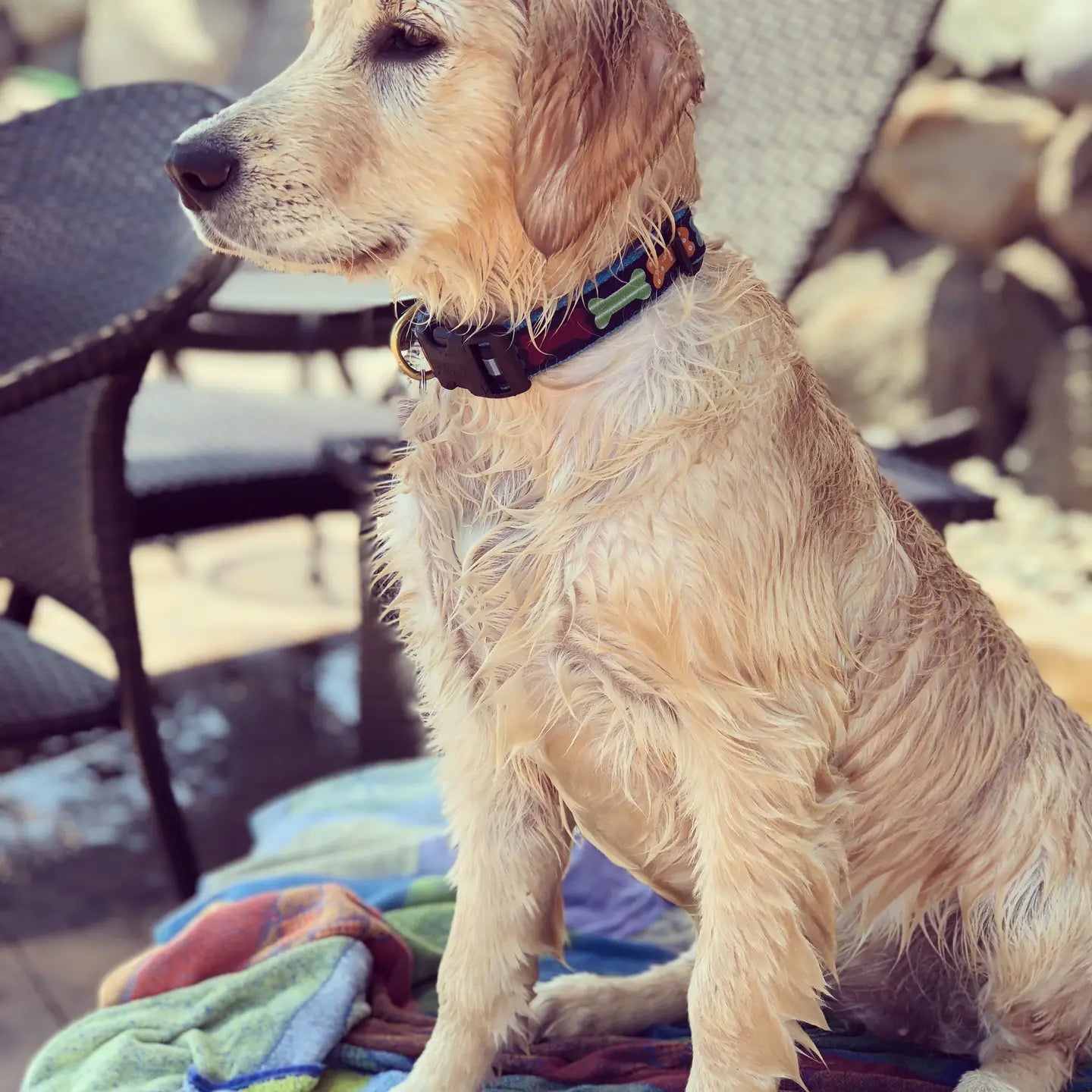 A beautiful bold & colorful pattern that we know will look amazing on your pup!