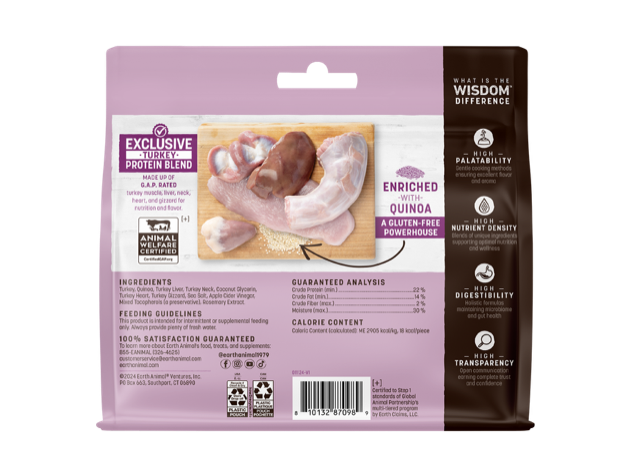 UNIQUE, PREMIUM RECIPE: Made with the Exclusive Protein Blend of sustainably sourced, G.A.P. rated turkey muscle and turkey liver, neck, heart, & gizzard to deliver superior nutrition & taste. Enriched with quinoa, an ancient grain.