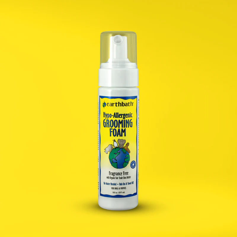 earthbath® specially formulated this Hypoallergenic Grooming Foam to help you groom your dog without the hassles of traditional water-based bathing. This rub on, towel off formula makes grooming a cinch and will leave your finely furred friend looking and smelling better than before. Gentle cleansers wisk away dander, dirt, and residual saliva, helping resolve human/dog allergies and leaving the coat with a plush, show-quality shine. Helps control shedding too. Safe for all dogs over 6 weeks.