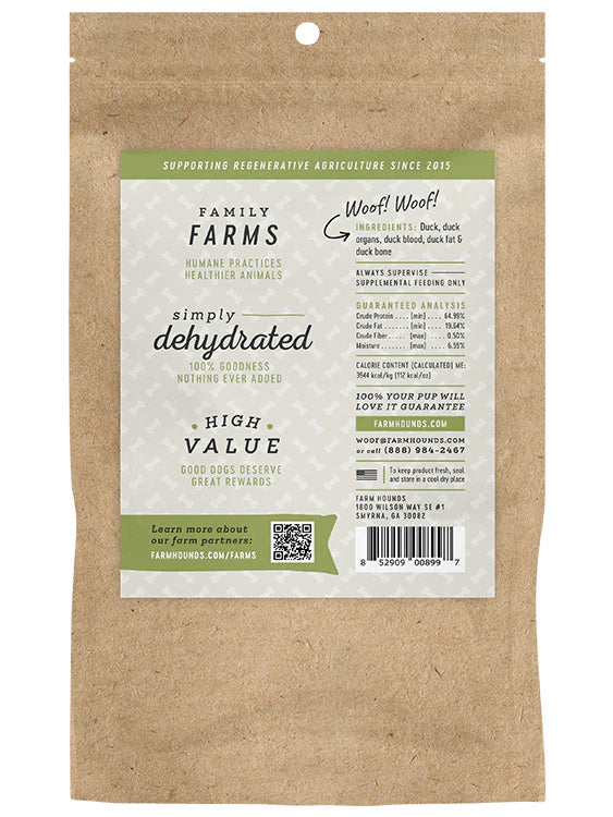 Only the GOOD stuff: Every bag is 100% Duck that is transparently sourced from family farms! With the power of dehydration, we offer your pups treats that are free of salt, sugar, fillers, chemicals, and preservatives!