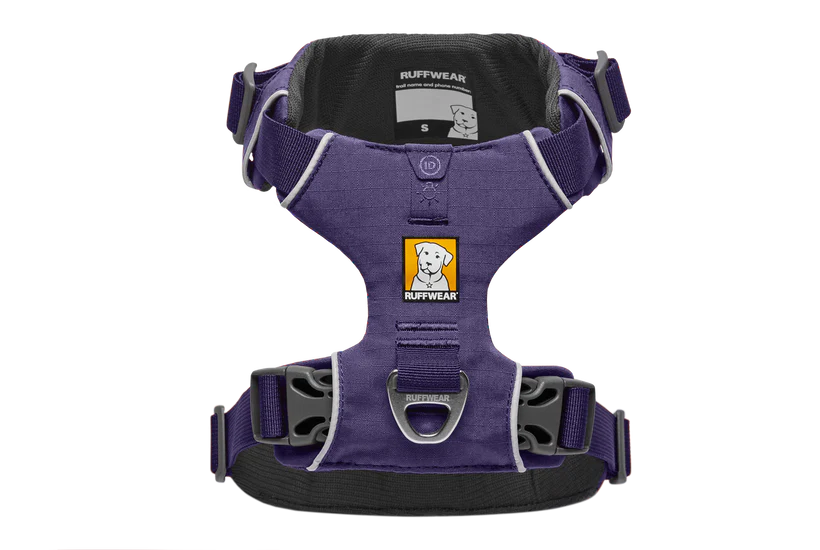 The Front Range Harness by Ruffwear is a padded everyday dog harness that is easy to put on and comfortable for dogs to wear. A key piece of gear for canines embarking on a life of adventure with their humans, the harness features two leash attachment options: an aluminum V-ring centered on the dog's back for everyday walks and front clip webbing at the dog's chest to redirect dogs that pull on leash. The ID pocket keeps dog tags quiet and easily accessible, and the reflective trim, and light loop for a light clip, boost visibility in low-light conditions. Four points of adjustment for an optimal fit. Check out the matching Front Range collar & leash to complete your dog's walking set! Available on our site.