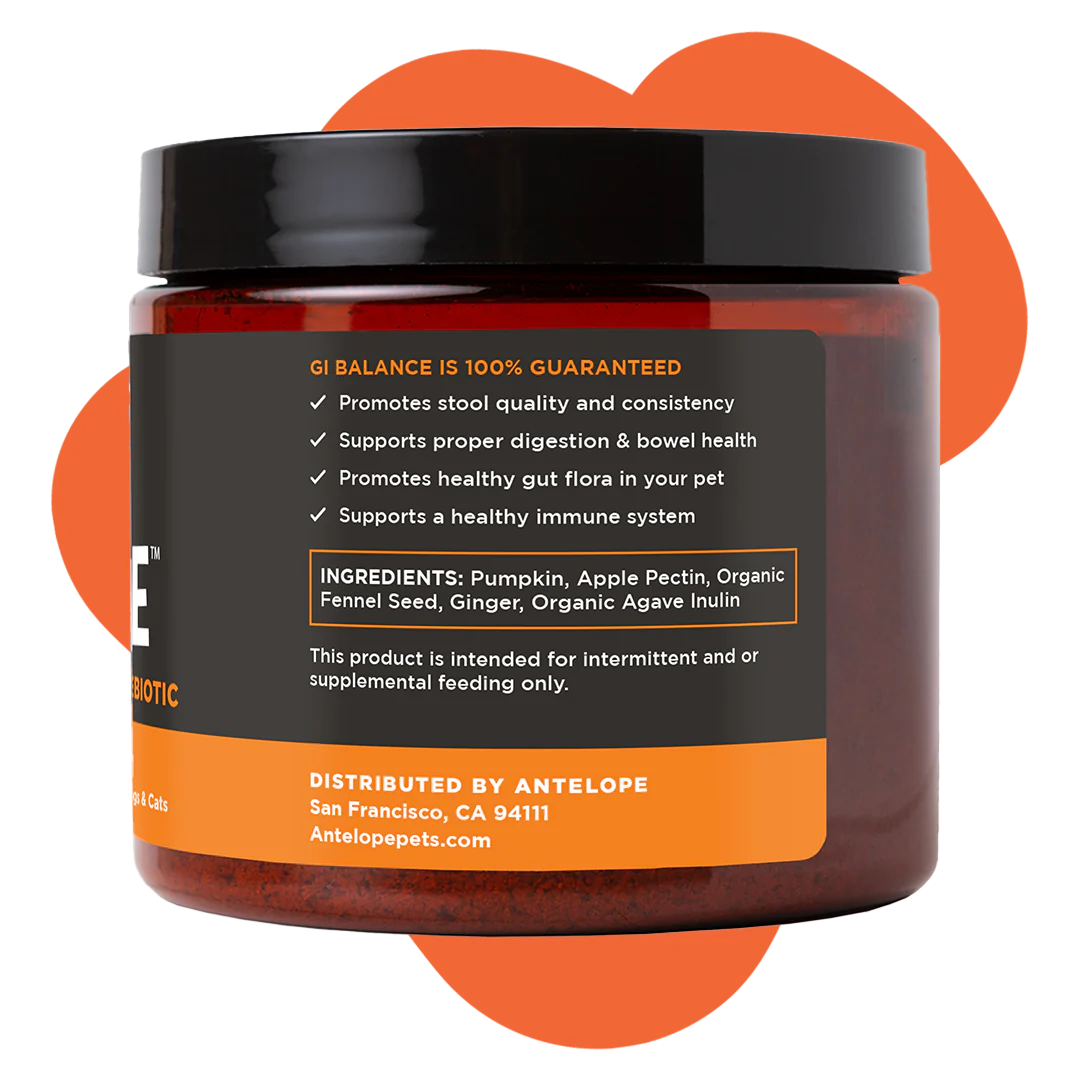 GI Balance is perfect for cats and dogs of all ages and sizes who experience occasional gastric distress or upset tummies due to dietary or environmental changes. May be used as a daily supplement to help maintain stool consistency and promote healthy anal glands.