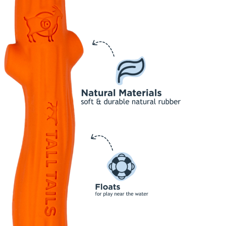 Playing fetch with your dog is the purest form of interactive play, making fetch stick dog toys the greatest of all toys for dogs. With that in mind, Tall Tails came up with the GOAT Sport Fetch Stick Dog Toy, an update to our favorite toy! Different dogs have different play and chew styles, so we designed the GOAT Sport Ring Dog Toy with several different features: floats for fun water play, durable natural rubber for tough rugged play, and high visibility color for easy finding.