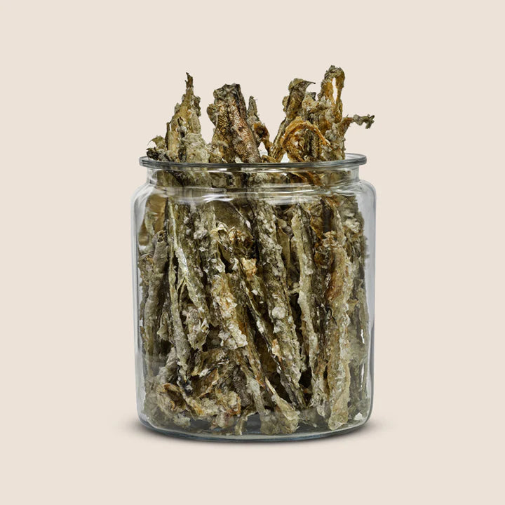 Polkadog sailed the ocean far and wide to net this delicious and nutritious single ingredient offering from the sea. The sustainably caught North Atlantic fish treats for dogs are folded by hand, and dehydrated in-house to make an irresistible, satisfying crunch.