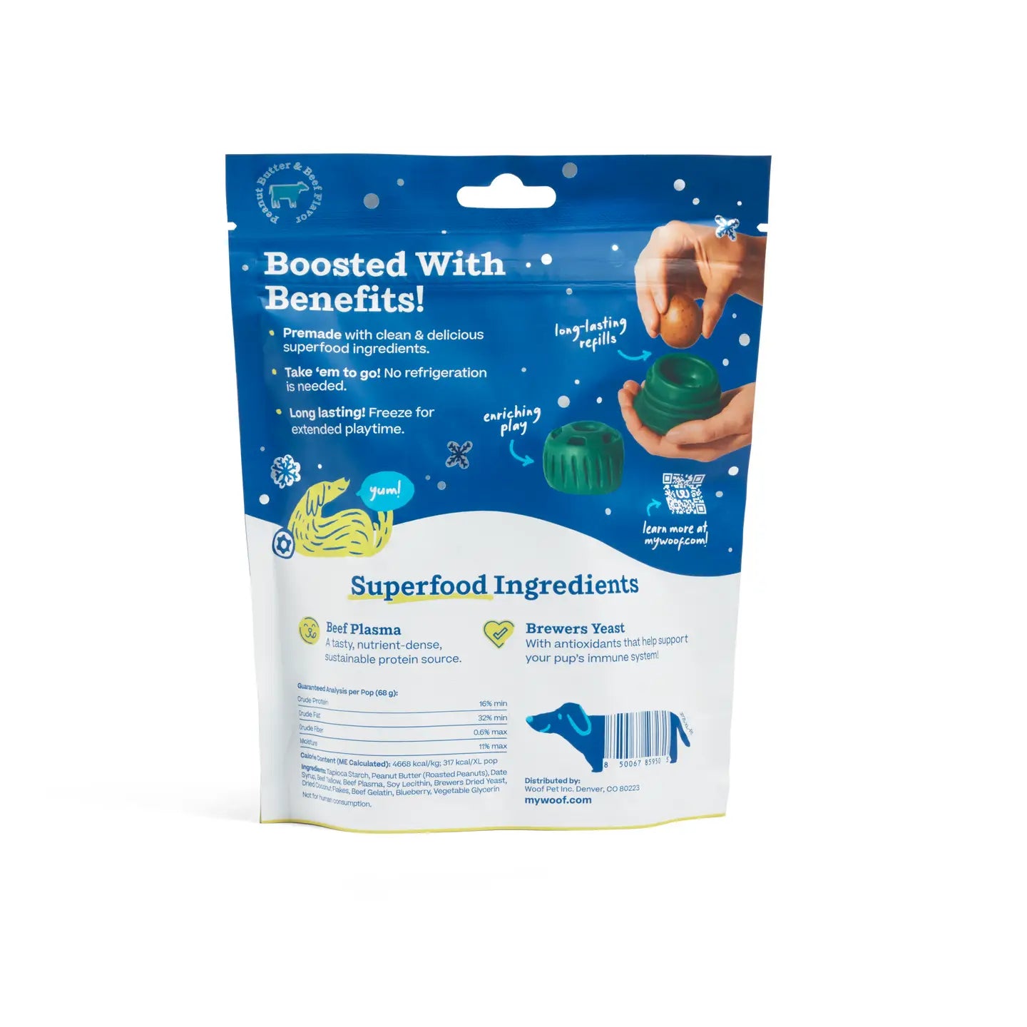 Use Woof's pre-made Pops to fill your dog's favorite new enrichment toy.