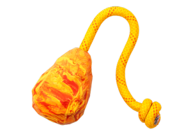 Tug, throw, fetch, repeat: The Huck-a-Cone was inspired by rewarding play between avalanche dogs and handlers during training. We took our popular Gnawt-a-Cone™ and added a knotted rope handle, providing excellent grip during training drills and rewarding play. The natural latex rubber toy is tough enough for even the most persistent canines.