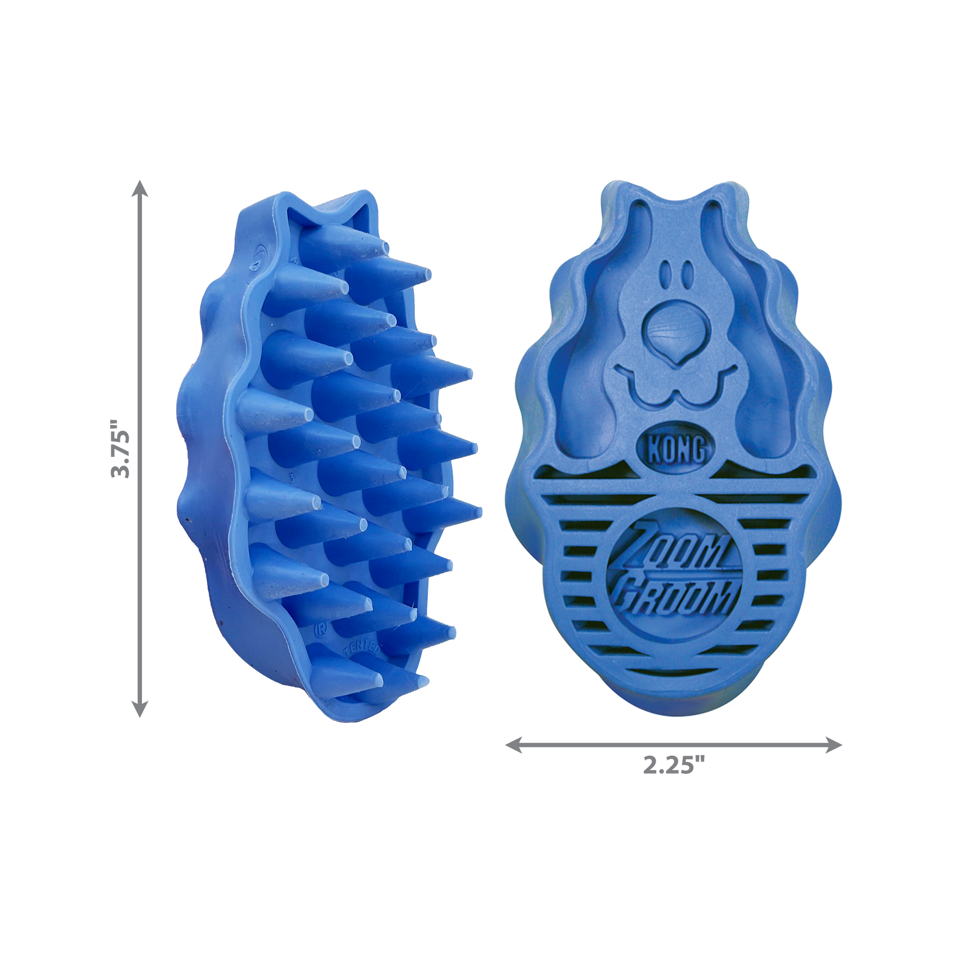 The KONG ZoomGroom™ helps make it easier to get your dogs clean. While shampooing use the ZoomGroom™ to clean your dogs’ coat and pull fur that's ready to shed. The 3/4 inch rubber fingers reach through the coat to massage the skin, stimulating capillaries and natural oil production leading to a healthy coat for your dog.