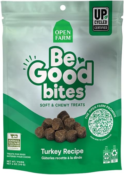 Our Turkey Recipe Soft & Chewy treats are made with humanely raised turkey as the first ingredient, combined with high-quality non-GMO fruits & grains. These treats included 30% upcycled ingredients, making Be Good Bites great for your pup and the planet too! Approximately 180 Treats per bag
