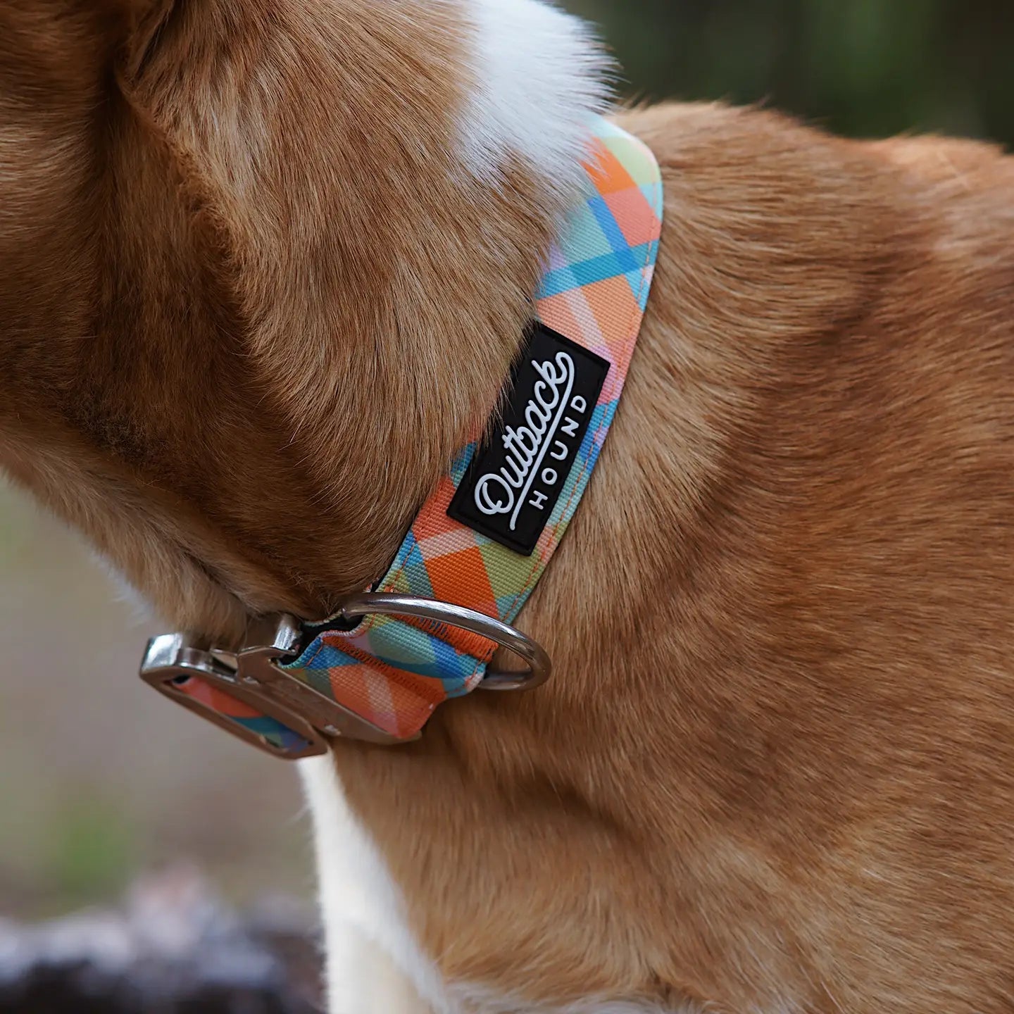 The Summer Plaid Collar features a brightly colored unique plaid design and chic silver hardware, this beautiful collar is sure to compliment any pups summer adventures.