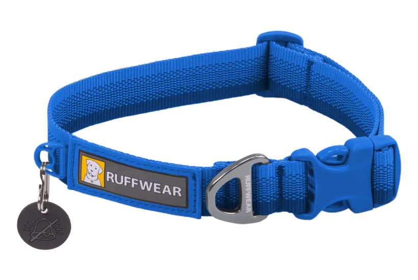 The Front Range Collar by Ruffwear is an everyday dog collar – an essential in every canine's kit – with an easy-to-use side-release buckle. The ombré pattern gives a nod to the shifting hues of the nature-inspired colors that make up our Front Range™ Collection. It includes Ruffwear's signature collar features: an aluminum V-ring, separate ID tag attachment point, a silicone tag silencer, and strong and comfortable webbing that holds its color.