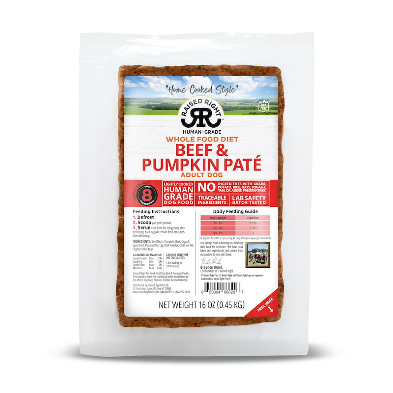 Raised Right "Home Cooked" Original Beef & Pumpkin Adult Dog Recipe