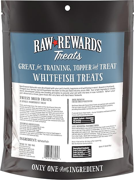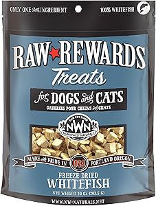 These Raw Rewards freeze dried Whitefish treats are perfect for the fish loving dog!