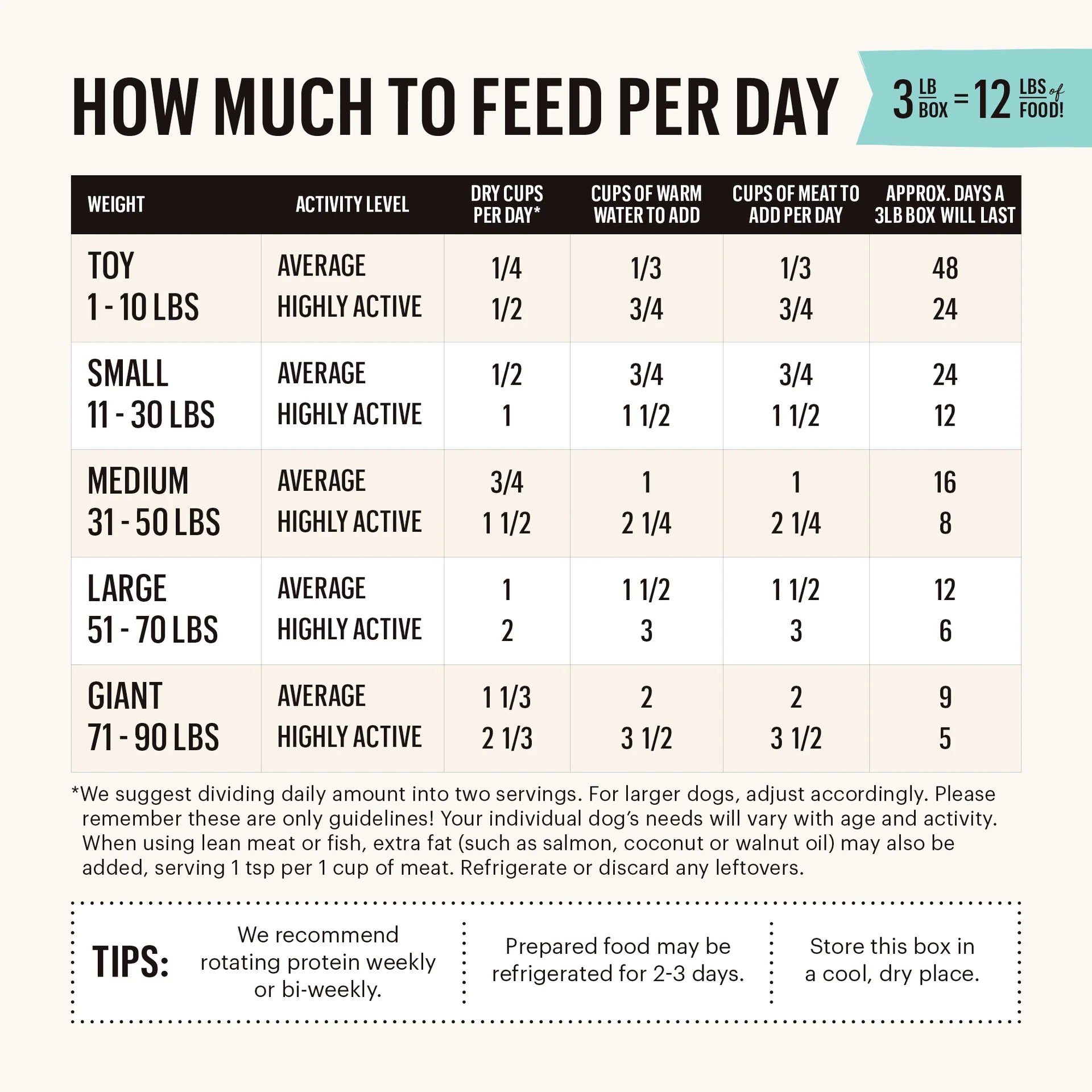 Dabbled in home cooking, but don't love the prep work? This Grain Free Fruit & Veggie Dog Food Base Mix is a delicious mix of antioxidant-rich fruits and veggies that eliminates the prep work associated with home cooking. Simply add warm water, your own source of protein and voila! A homemade meal that you and your pets will love. It's a winner for raw feeders and homecookers who want to be sure their dog is getting all of their essential nutrients, and a great choice for adult and senior dogs dealing with meat sensitivities. It’s also 100% human grade, meaning we use the same whole foods you’d recognize in your own kitchen, and make this recipe in a human food facility for the highest quality and safety standards.