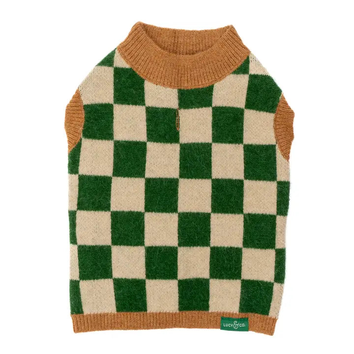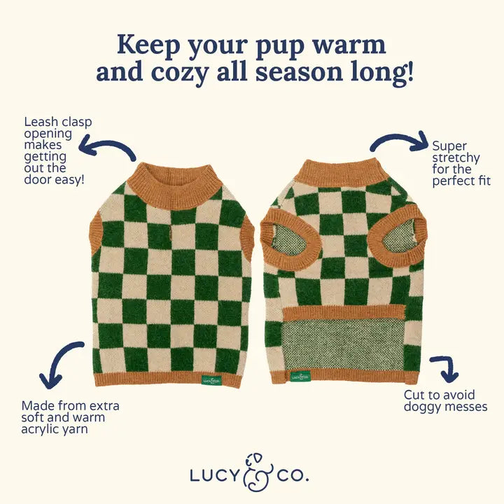 From Lucy & Co: Our bestselling You're a Square Teddy Vest has been reimaginged as a super soft Sweater! When we set out to design our dream dog sweater, we knew it had to be super-soft-and-stretchy (but with a neckline pup’s can’t wiggle their way out of!)—plus an easy leash clasp for when they’re ready to go outside…now! The coolest part though? The prints we spent months and months developing. This one is a little bit smart, a little bit square —and yep, we wish it came in our size too.