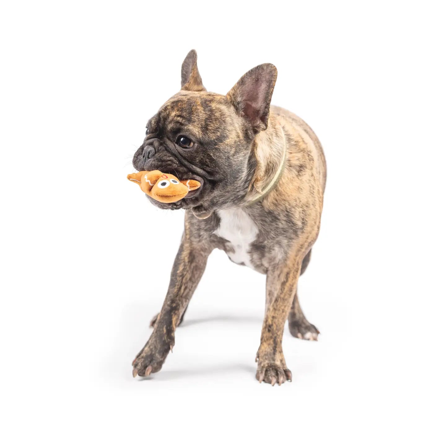 Oh snap! This Huxley & Kent special-sized tiny toy is perfect for puppies and small breeds! Tiny Tuffs are made with Diamond Mesh Interlining to make these high-quality, soft plush toys hold up to sharp teeth and tearing! Squeeze! Squeak! Each toy has a squeaker and crinkle inside! Tiny Tuffs are designed with safety in mind! No loose pieces and each seam is reinforced using nylon seam tape for extra strength. All toy material used is safe, non-toxic and has no heavy metal.