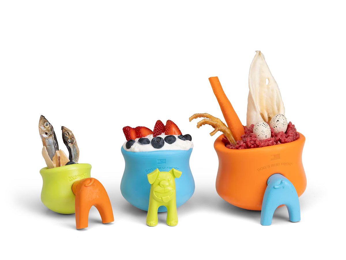 - Pairs well with nut butters, creamy treats, cheese chunks, smashed banana, dog biscuits, and more.